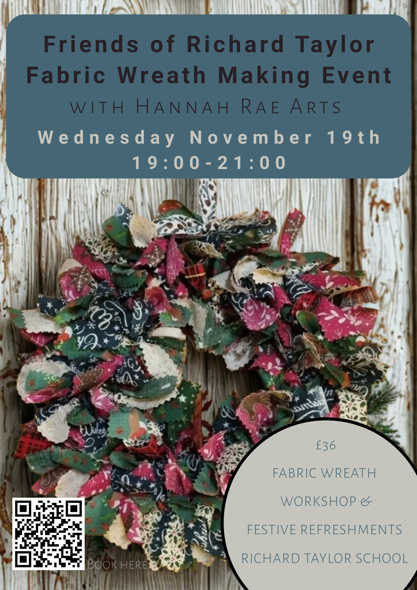 Make your own fabulous Christmas fabric wreath under the guidance of Hannah. All materials and festive refreshments included.